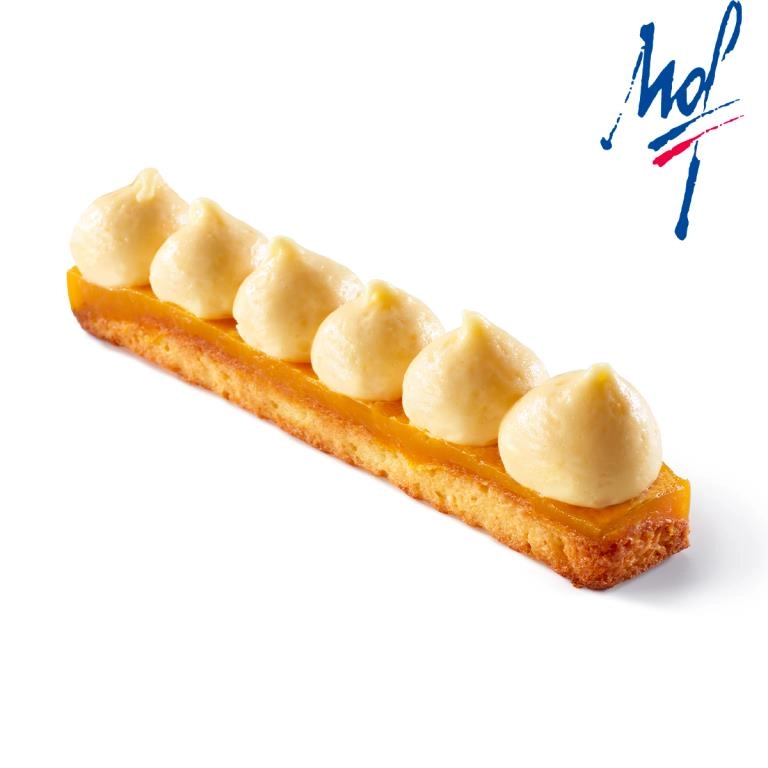 Entremets : crème d'amande coco, compotée mangue passion, crème chiboust rhum.