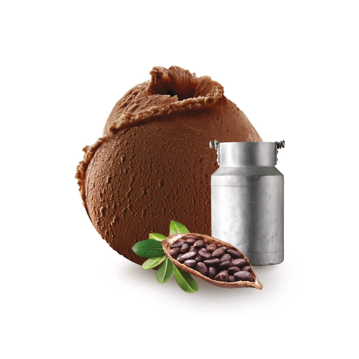 Glace au lait frais chocolat noir 59% Côte d'Ivoire. - Lait frais provenant de la ferme Marg'Aude - Crème et sucre français - Oeufs de poules élevées en plein air en France - Sans arôme, sans colorant Gamme haute expression.